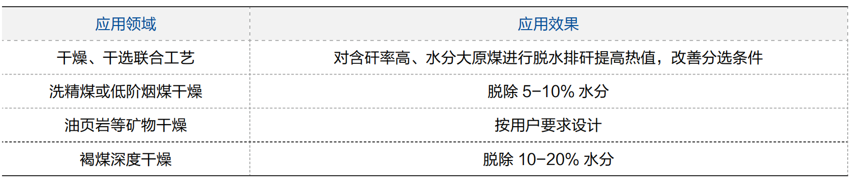 廣泛适用于煤炭行業原煤、洗精煤、褐煤、煤泥以及化工用備煤幹燥等其他礦物原料的幹燥。