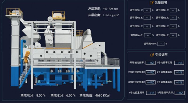 ● 設計了幹法重介質流化床密度穩态調控方案,基于原煤性質前饋 - 産品質量反饋 - 自主決策調控閉環匹配,實現分選密度精準調控。
